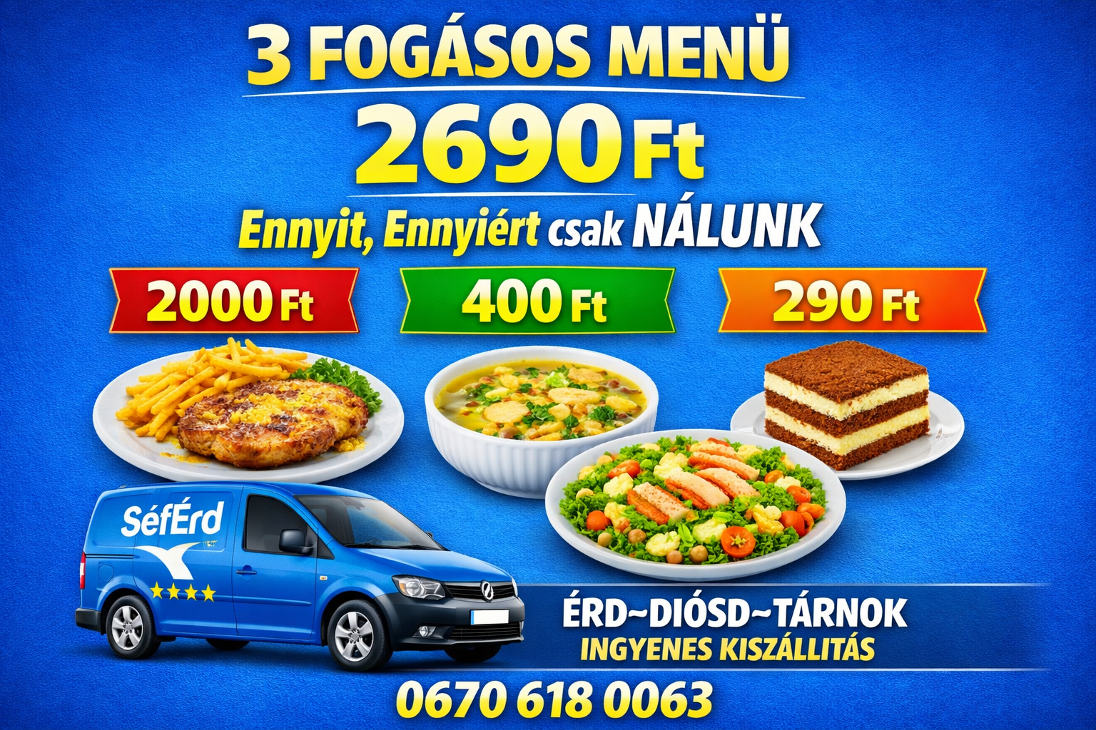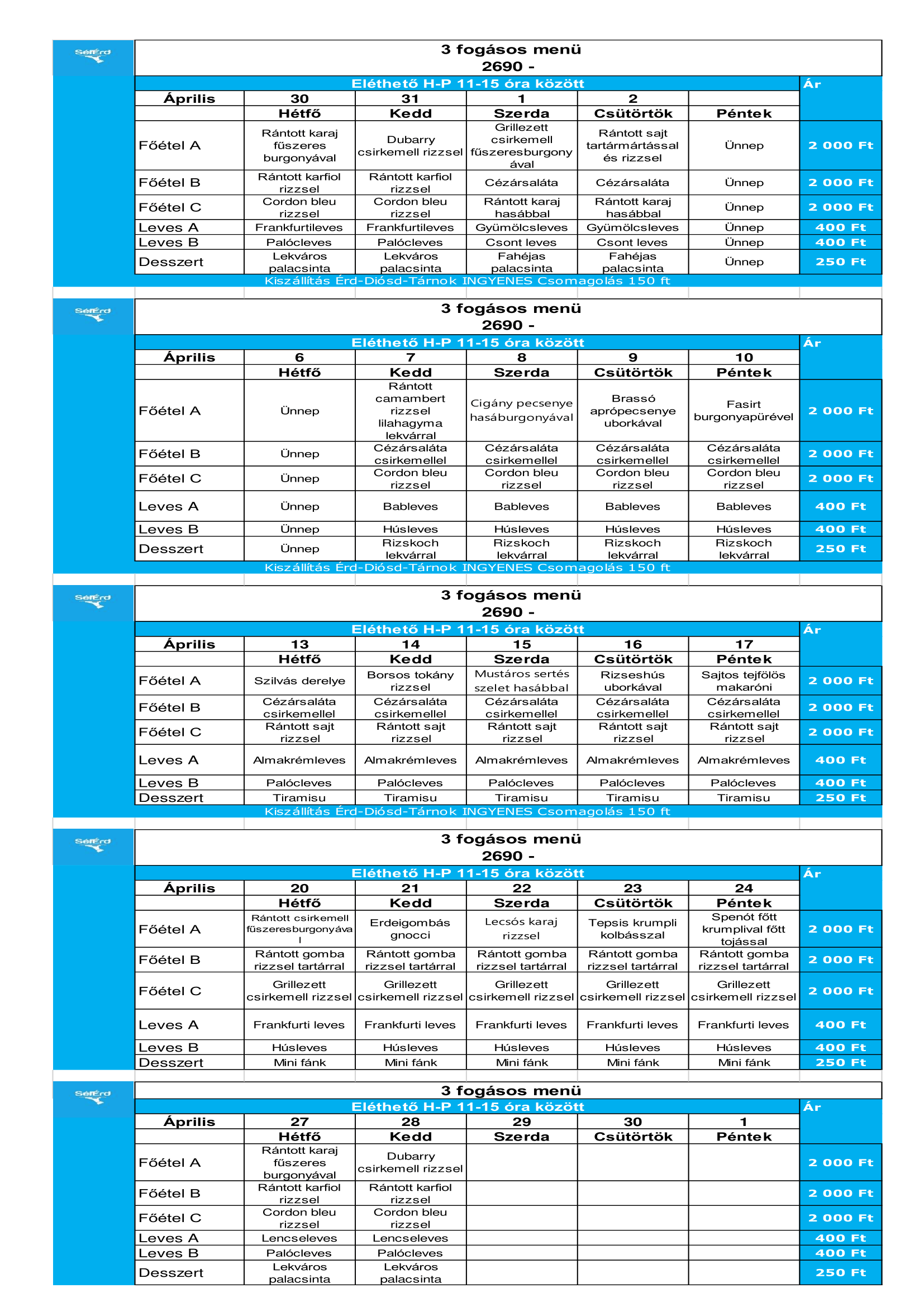Jól ismert ételek akciós áron H-P 11-15 óráig.